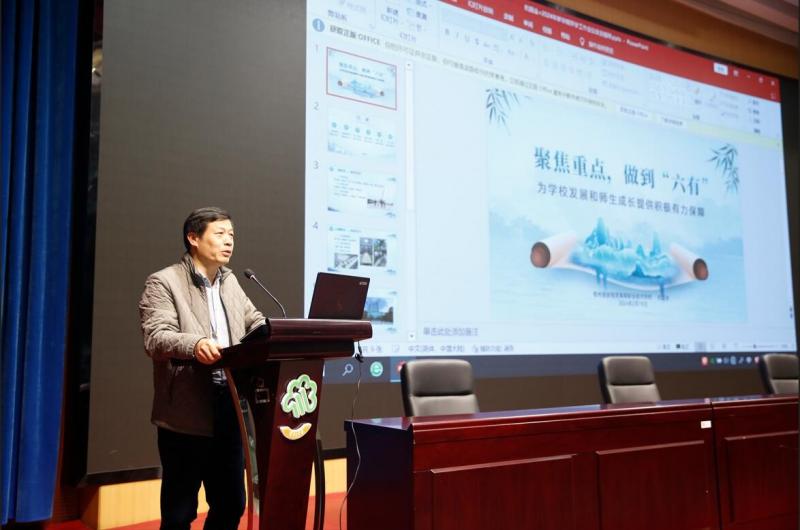 校长王劲主持会议,他代表学校党政向全体教职工送上新春的祝福,对假期中仍然坚守在学校各工作岗位的部门和教职工表达了肯定和感谢。副校长彭利平、校党委副书记陈晓霞、副校长杭国金分别围绕各分管条线工作进行了展望和部署。