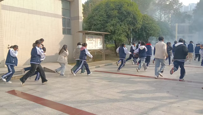 下午15点15分,新北消防利用学校广播讲解了“如何火灾报警”、“如何高层建筑、宿舍火灾疏散”等问题;15点40分,随着报警声的响起,各班主任、楼层指挥人员迅速到岗到位,沉着冷静地指挥学生用湿毛巾捂住口、鼻,尽量将身体放低,紧急撤离各楼层、楼栋,安全、快速、有序地疏散到指定地点;最后,15点50分左右各疏散点点名完毕并报总指挥。