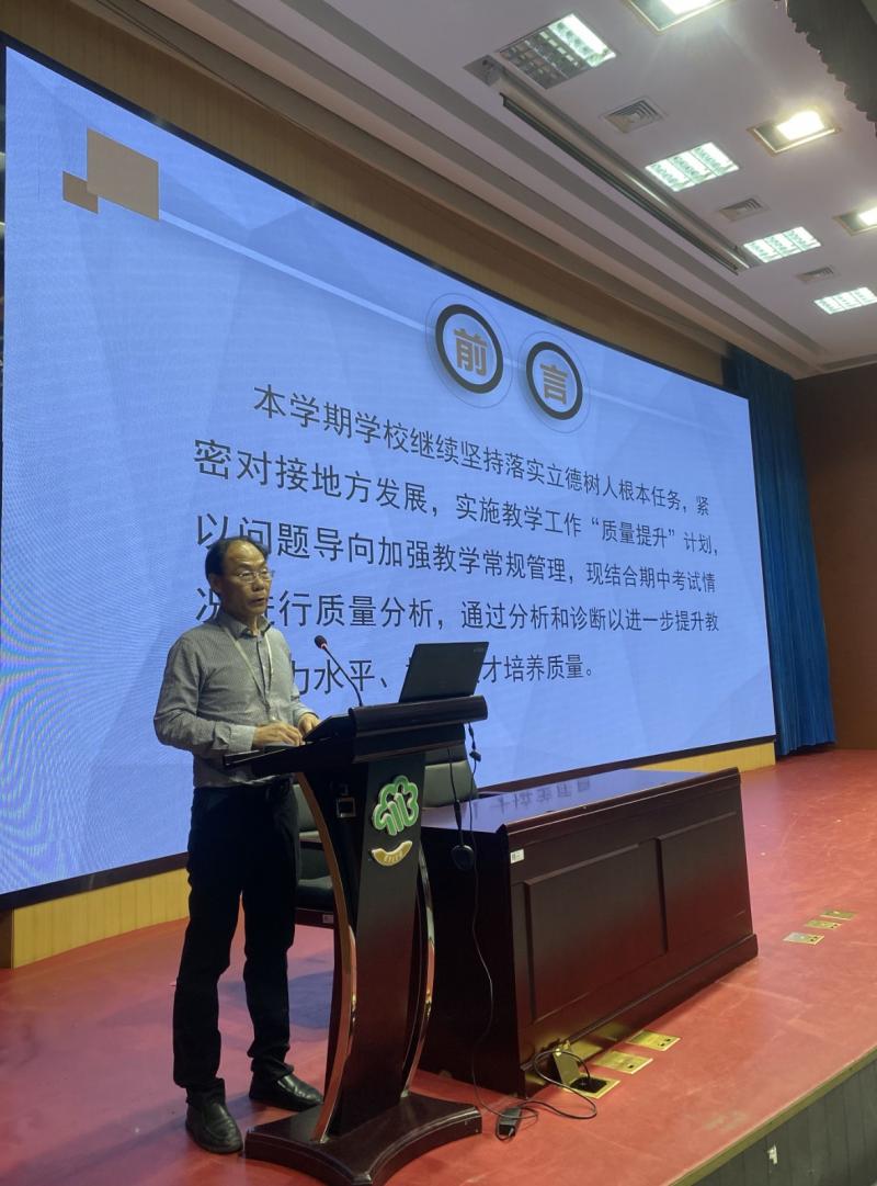 会上,教务处刘振华处长对期中考试情况进行质量分析,对本学期教学工作“质量提升”计划的落实情况与成效进行了阶段性总结,通过分析和诊断,为下半学期进一步提升教学质量打下基础。