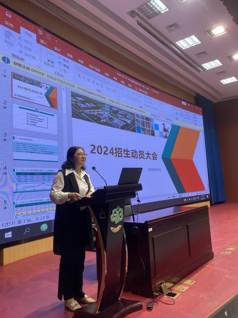 校党委陈晓霞副书记对今年招生工作的总体形势、学校招生工作的前期部署实施情况进行了介绍,并围绕招生宣传进行了全面动员。
