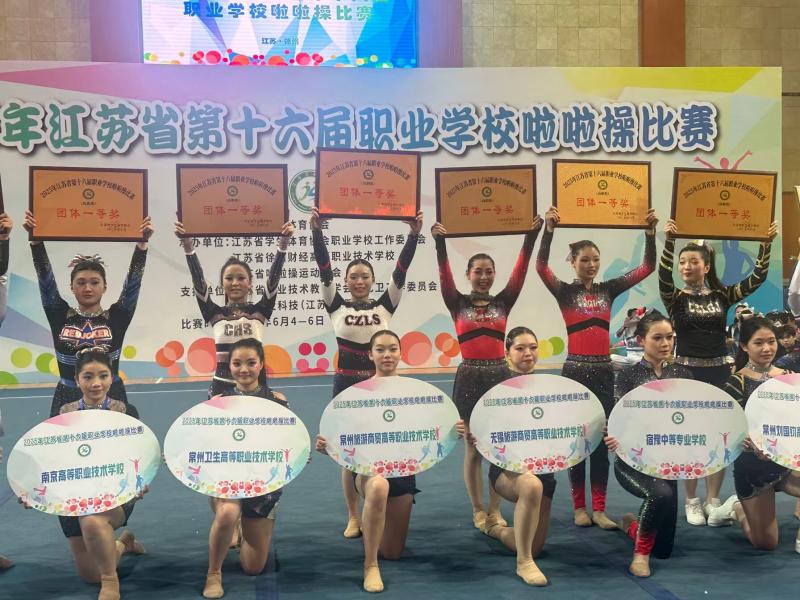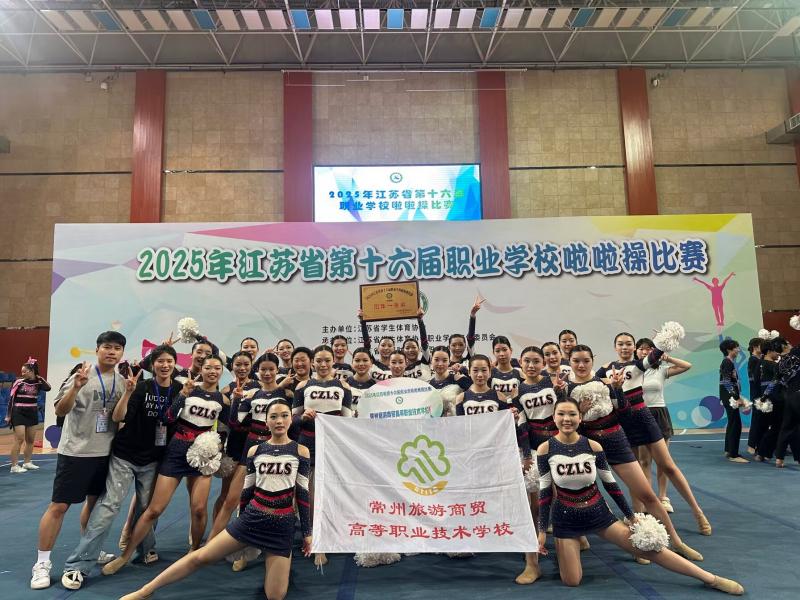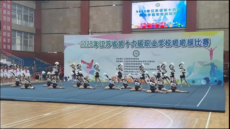 6月4日至6日,2025年江苏省第十六届职业学校啦啦操比赛在徐州财经高等职业技术学校激情开赛。经过与全省16支高职劲旅的激烈角逐,我校啦啦操队凭借过硬的实力和出色的临场发挥,最终勇夺高职组一等奖!