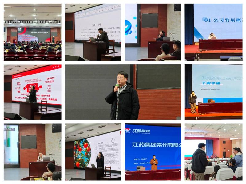 1月6日,首场实习企业推介会在E1-三杰厅顺利举行。本次推介会邀请到常州品德数码科技有限公司、江苏鸿图信息集团有限公司、江苏锦丰业汽车新材料科技有限公司、常州市博皓财务管理有限公司、中之网科技有限公司、江苏杰记农业科技有限公司6家企业代表莅临现场。各企业招聘代表通过PPT、短视频等展示形式,全面介绍了企业的发展历程、核心业务、企业文化、人才培养体系及员工福利待遇,重点解读了针对相关专业应届毕业生的实习岗位、任职要求与实习期间的培养规划。