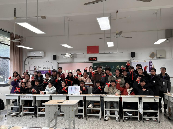 首先,杨院长为同学们作动员讲话。他寄语全体学子,百日时光虽短,却是改写命运的关键一程,希望同学们以职教高考为帆,以知识技能为桨,摒弃浮躁、脚踏实地,珍惜每一分每一秒的冲刺时光;同时叮嘱同学们,学院永远是大家最坚实的后盾,全体教师将全程护航,助力大家圆梦考场。杨院长的讲话掷地有声,点燃了在场学子的拼搏热情。