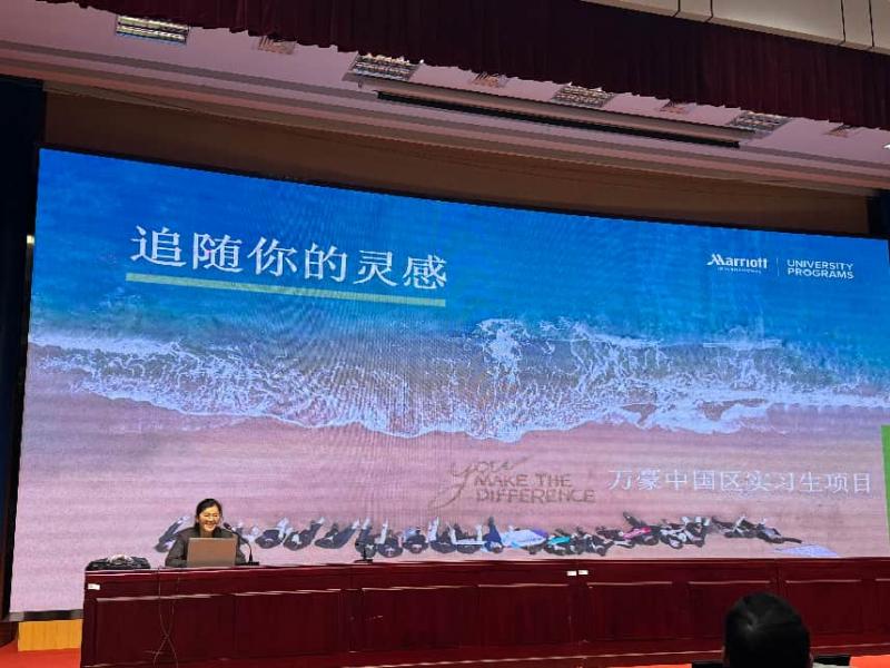 常州广电置业有限公司万豪酒店分公司以城市地标建筑的硬件优势,推介了中西餐厅服务、厨房等岗位,国际化的培训体系与管理培训生优先选拔机制,为学子提供广阔发展空间。