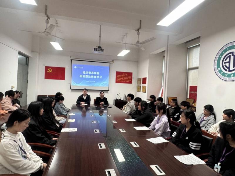 为进一步规范学生宿舍管理,营造整洁、安全、有序的住宿环境,4月3日中午12点15分,经济贸易学院蒋骏副书记、金媛科长针对本周宿舍较为薄弱的相关住宿生,开展专项宿舍提升教育会议。