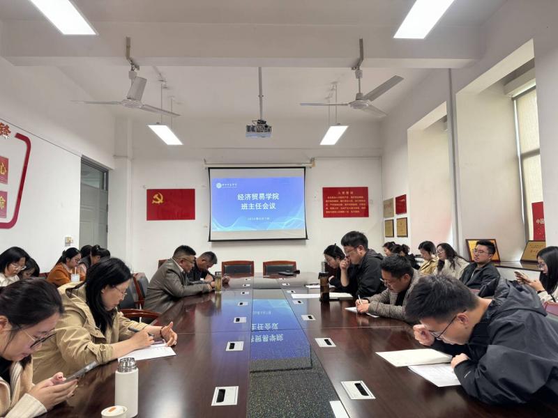 4月7号下午3点15,经济贸易学院在有光楼304会议室顺利召开了全体班主任会议。本次会议由蒋骏副书记主持,学生科金媛科长、团总支书记张蕴仪老师及全体学院班主任参加。