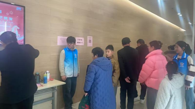 演出开始前,志愿者们迅速到岗,以饱满的热情投入工作。他们引导观众扫码签到、有序就座,耐心解答观众与演员关于场馆设施位置的咨询,同时协助工作人员处理各类突发情况,全力保障现场秩序井然。身着蓝色志愿服的身影穿梭在场馆各处,成为了剧场里一道独特的风景线。