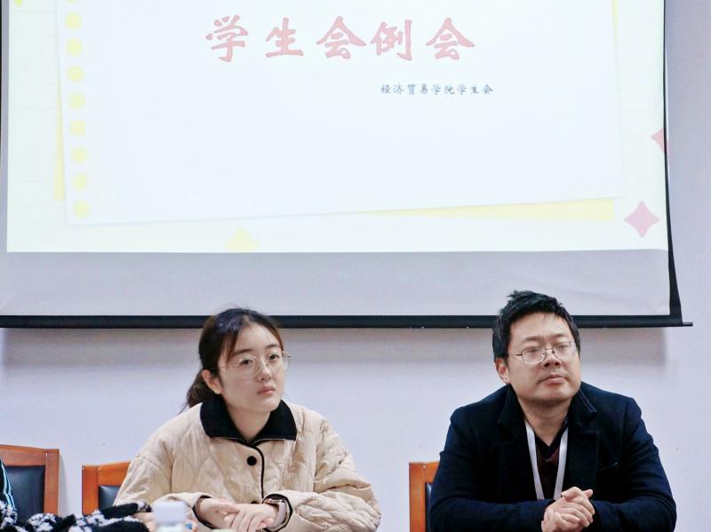 部门汇报结束后,张老师肯定了新颖的汇报方式,期望大家锐意进取。金老师表扬各部成效,为主席团提出优化查分制度的建议,各部长如何举办带动学院学生的活动或比赛,如棋王大赛,团课活动,用以丰富课余生活。刘老师为全体成员送上鼓励,高度肯定本次大会。相信在学院老师的悉心指导与全体成员的共同努力下,经济贸易学院学生会将进一步凝心聚力、携手共进,为服务同学、促进学院发展贡献更多青春力量。